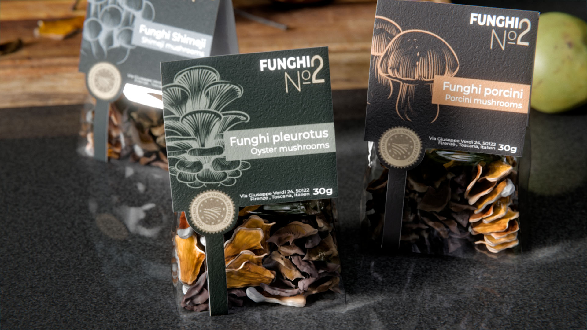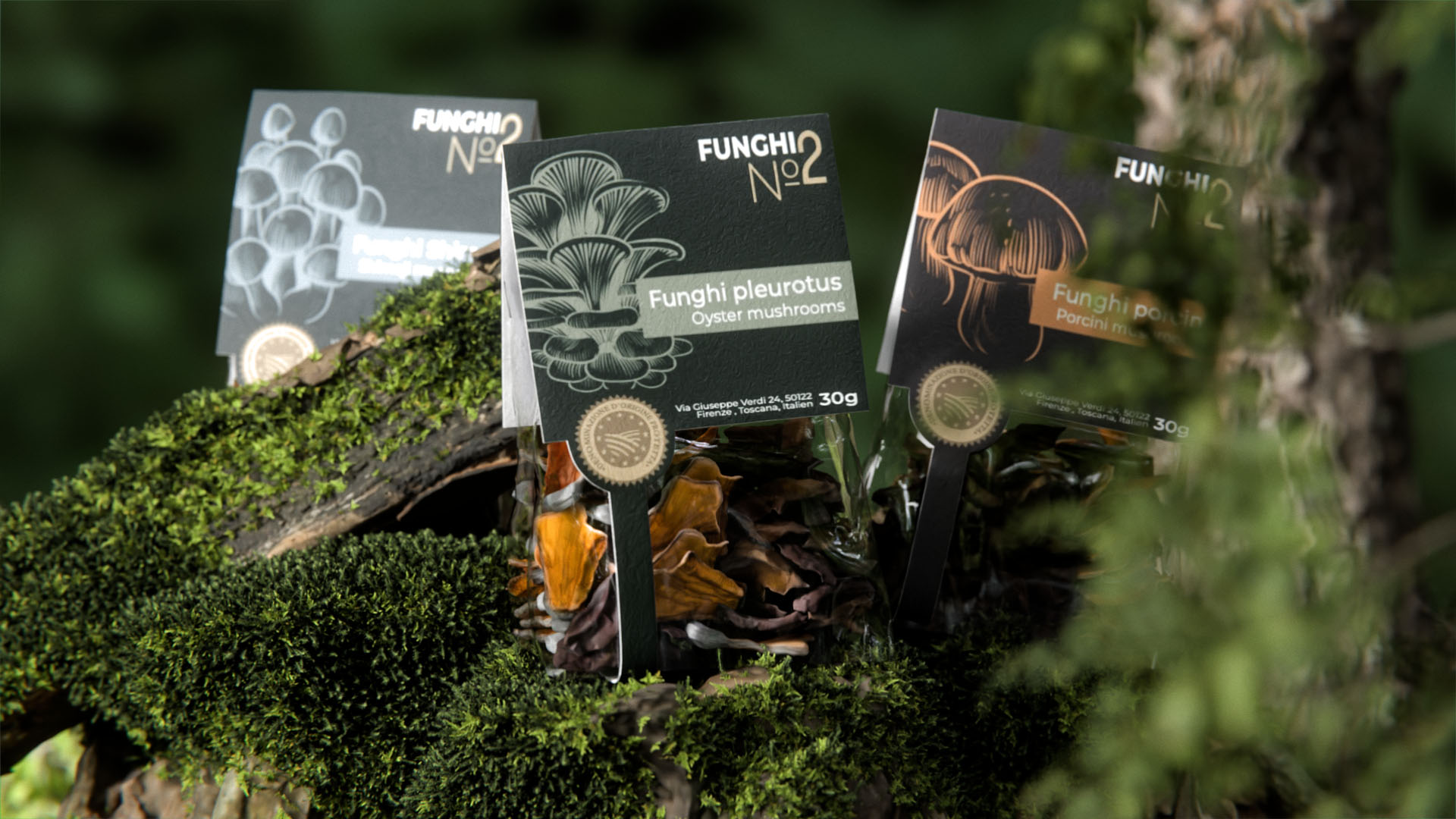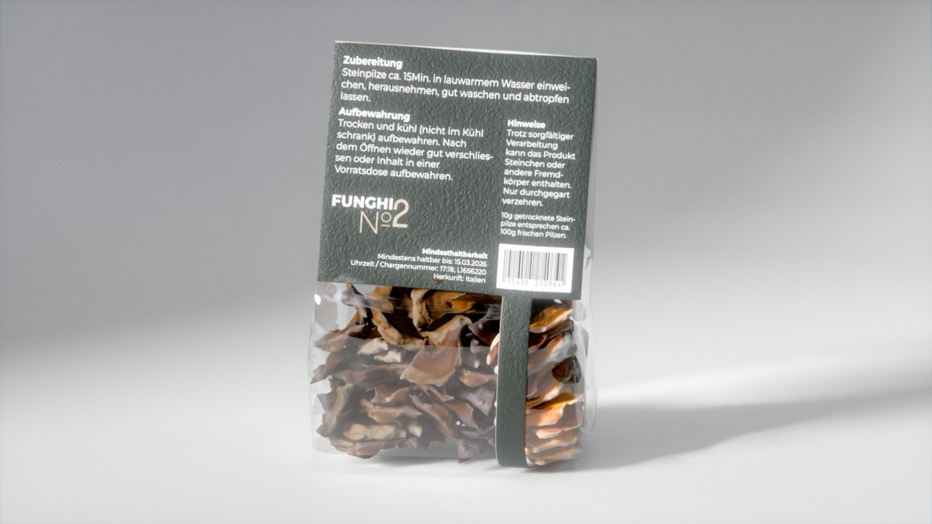Diese Arbeit entstand im Rahmen der Zwischenprüfungen der Fachklasse Grafik. Während einer intensiven Projektwoche am Comersee entwickelten wir eine Verpackung für ein zugeteiltes Produkt, in meinem Fall getrocknete Pilze.